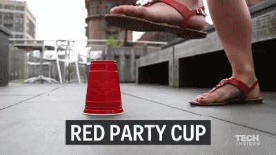 一个普通塑料杯踩一脚,吧唧,瘪了
