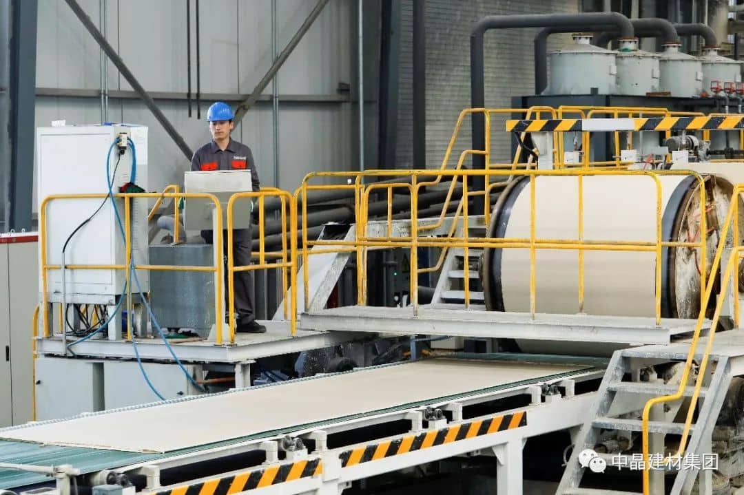 记者参观了中晶建材集团的生产现场,生产建材的车间能够保持整体干净整洁、作业标准化规范有序、生产自动化程度高等场景远远超出我对一般建材工厂的想象,没有看到往来穿梭的大量的操作工人,也没有感受到刺激性的气味和灰尘。