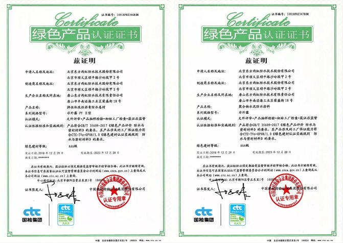 东方雨虹申报两类产品获“绿色产品认证”