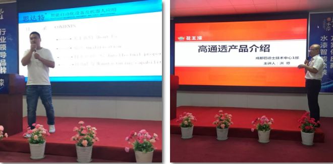 参观结束,会议议程安排了各技术板块工程师的产品工艺培训,技术总工程师谢贵齐的《工程漆产品和施工工艺》、方秋元总经理的《一体板产品知识》、水性技术工程师卫书平的《水性漆产品及施工工艺》、UV技术工程师刘力磊的《UV漆产品及施工工艺》、油性技术工程师洪僚的《威兰斯产品及施工工艺》、 喷涂设备供应商思达特李总的《智能自动化设备应用》,满满的干货,让大家受益匪浅。