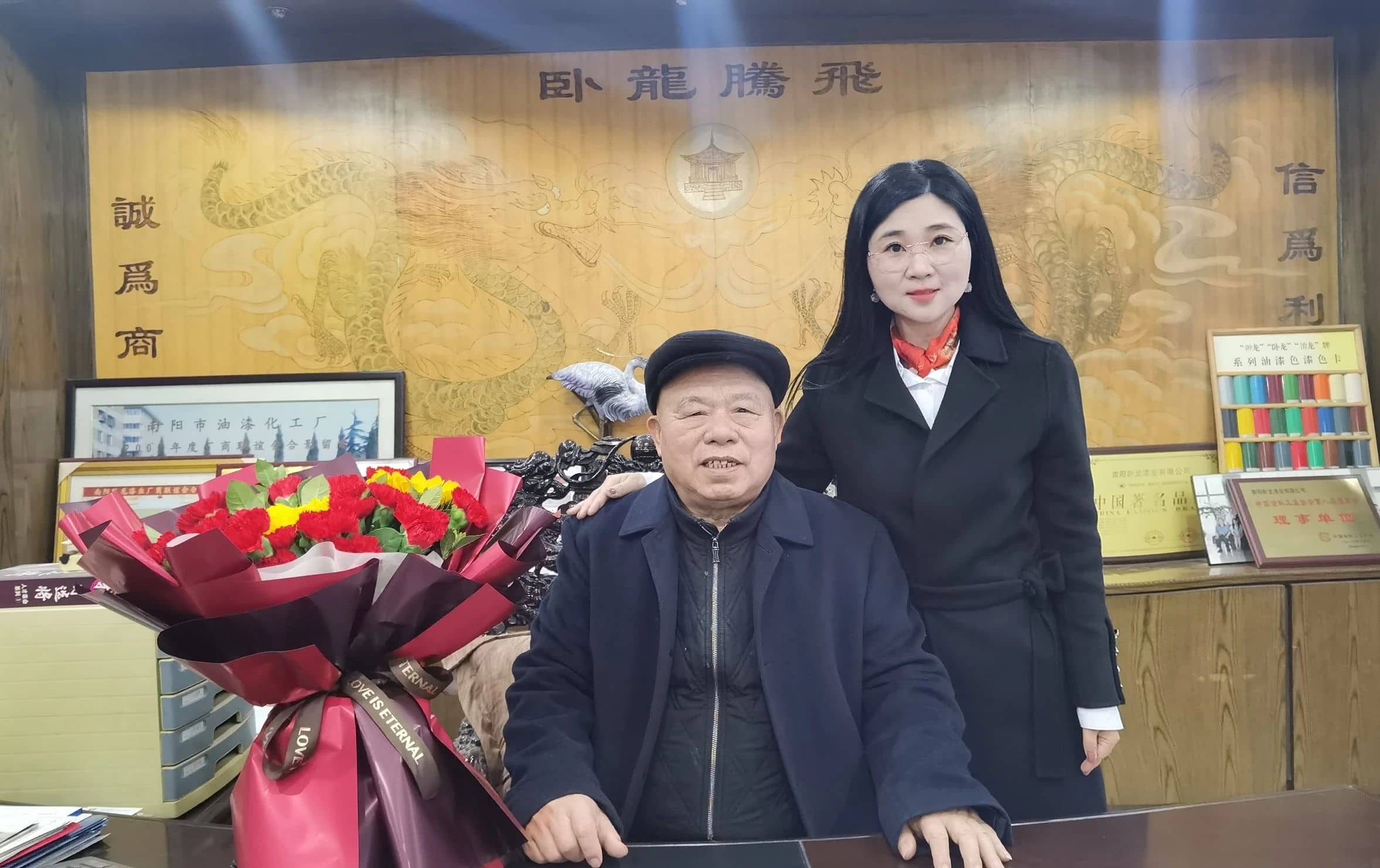 涂料采购网总监王赛与卧龙涂料董事长李国报合影
