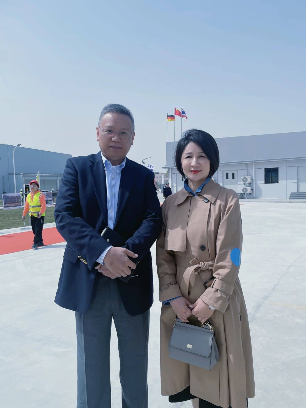 涂料采购网市场总监张馨元(右)受邀参与此次活动与湛新中国区全球副总裁邹毅(左)合影