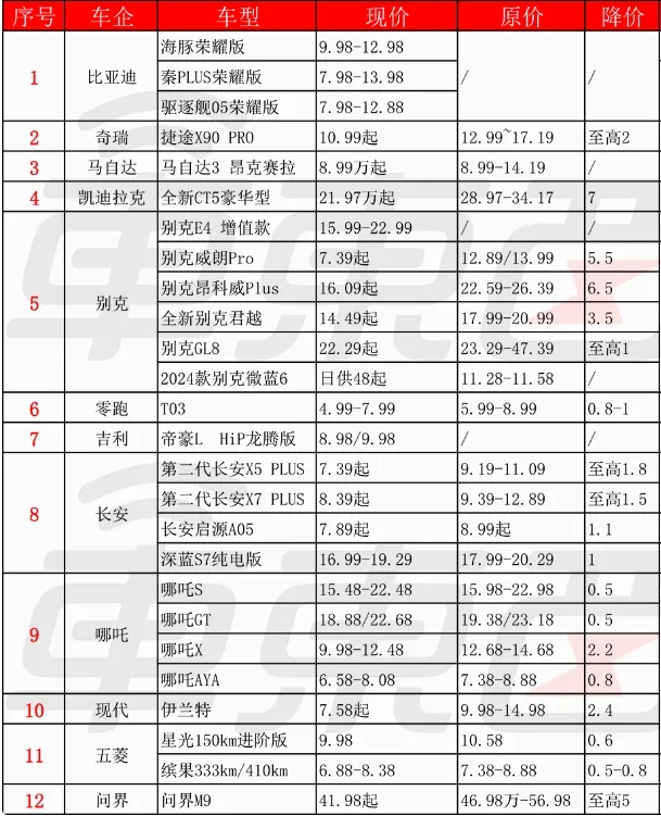 降价,现金、置换补贴,低利率金融贷款等优惠,成为车企618抢夺客户的惯用手段很多车企选择降价促销,“卖一辆亏1-2万”,以换取市场份额。奇瑞、一汽奥迪、一汽大众、一汽丰田、捷豹路虎、雪佛兰、比亚迪、五菱汽车、阿维塔等汽车品牌推出618金融、补贴等多重优惠。