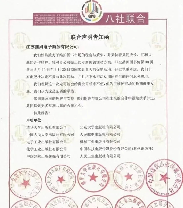 近日,涉及北京和上海共计58家出版社的两份联合声明引起了广泛关注。声明针对京东的618促销方案活动提出了疑问和反对意见。京东近期推出的618促销方案涉及全品种图书价保2-3折的活动内容,大促也是为了提高销量,再让利消费者。但出版行业不满,认为2-3折的促销价已快击穿成本线。