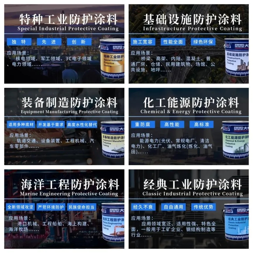 大桥油漆自主研发的六大系列产品,包含经典工业防护涂料系列、基础设施防护涂料系列、装备制造防护涂料系列、化工能源防护涂料系列、特种工业防护涂料系列和海洋工程防护涂料系列,能够精细化地解决客户痛点,提高了客户的生产效率,向消费者提供最舒适的产品和服务。值得一提的是,海洋工程防护涂料系列产品还攻克了我国海洋防护涂料领域的技术难题和“卡脖子”问题。这些涂料不仅继承了以往涂料施工宽容、良好的耐水性、耐磨性、耐油性及耐盐雾性等传统优势,还具有突出的环保性,能够与客户共同创造绿色、美好的未来。