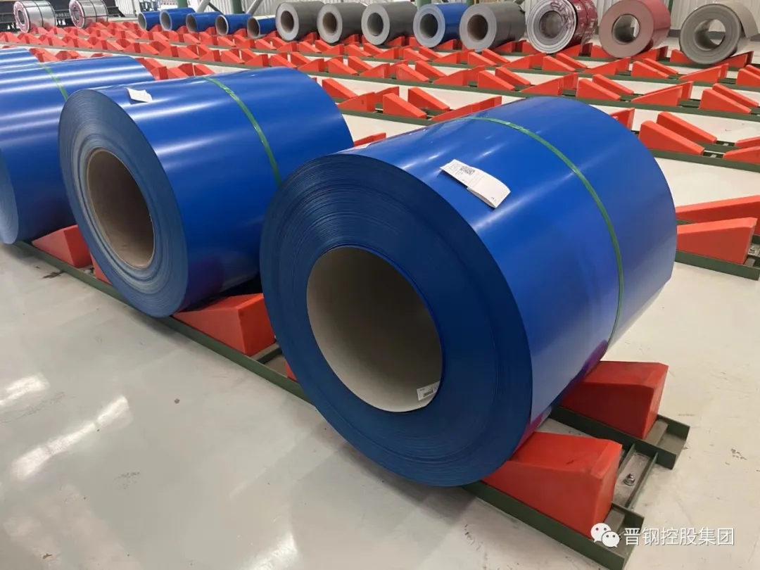 晋钢钢旗彩涂携手国际一线品牌涂料,开辟了中国高端涂镀的新纪元。经过第三方机构检测,可提供50年质量保证。产品适用于建筑外墙维护等应用场景,“晋钢珍珠龙胆蓝”是主打色。