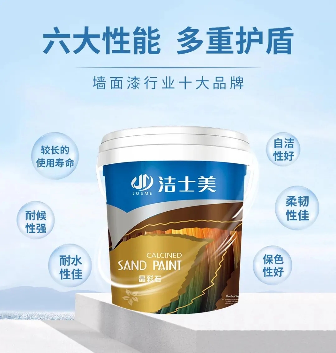 高性能乳液:配合高性能乳液,使得洁士美晶彩石的使用寿命更长久。