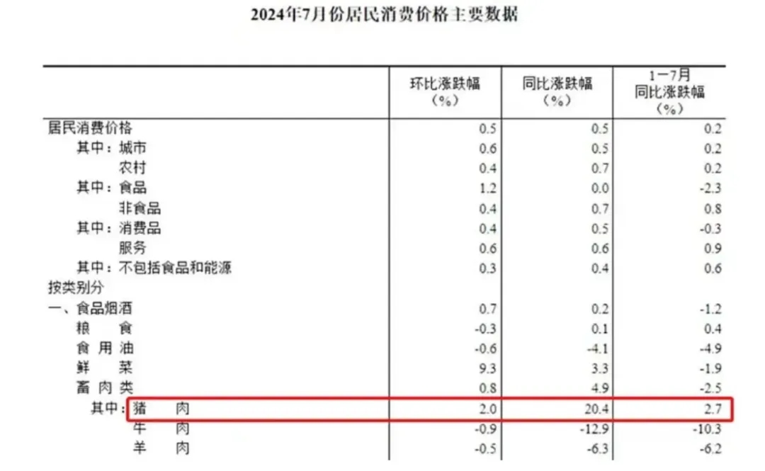 实际上,这种趋势已经持续了一段时期。7月CPI同比涨了0.5%。一句话来评价就是“温和上涨超预期”。但仔细观察就会发现,7月的物价上涨主要是猪肉立了大功,同比大涨20.4%,带动了食品价格的上涨。在猪肉打头阵的带领下,近期消费品市场掀起一波涨势。
