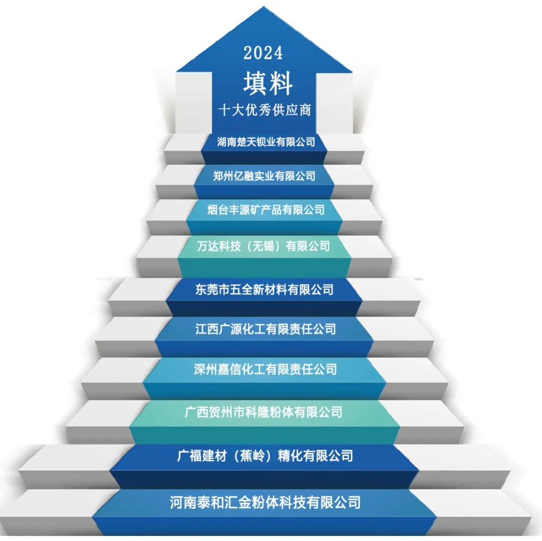 湖南楚天钡业有限公司、郑州亿融实业有限公司等十家企业荣膺“填料十大优秀供应商”称号,以稳定的性能和出色的环保表现,提升了涂料的物理性能,更以实际行动,助力涂料行业向更高方向迈进。