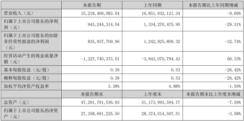 对于营业收入的下滑,东方雨虹半年报称:受下游需求未达预期影响,营业收入较上年同期下降9.69%。具体来看,中国境内实现营业收入148.13亿元,同比下降10.07%;按业务板块销售来看,防水卷材营收60.477亿元,同比下降15.82%;涂料营收47.603亿元,同比下降8.19%;工程施工营收12.551亿元,同比下降8.22%;其他主营收入7.743亿元,同比下降2.07%;其他业务收入2.526亿元,同比下降39.93%。