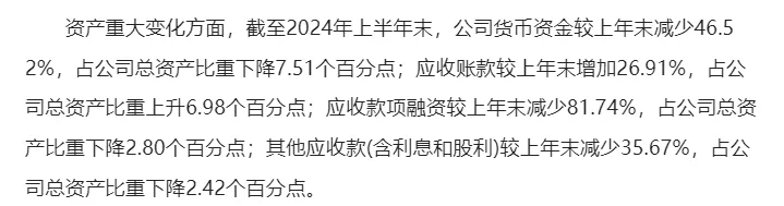 东方雨虹2024上半年的应收账款为121.43亿元,应收票据为5.46亿元,应收票据及应收账款合计126.89亿元。截至2024年上半年末,东方雨虹应收账款较上年末增加26.91%,占公司总资产比重上升6.98%。
