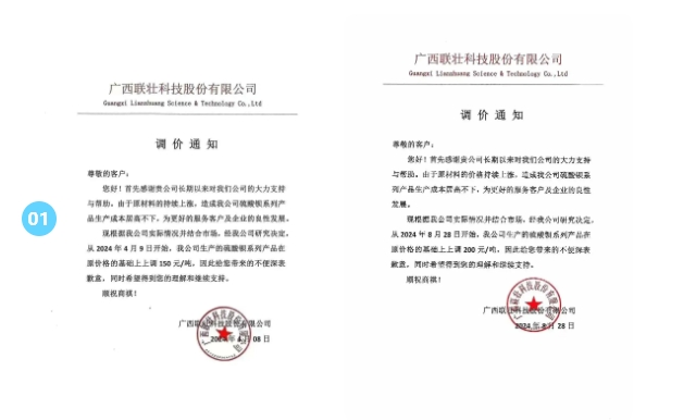 广西联壮科技分别于4月、8月宣布,硫酸钡产品在原价格基础上上调150元/吨、200元/吨。
