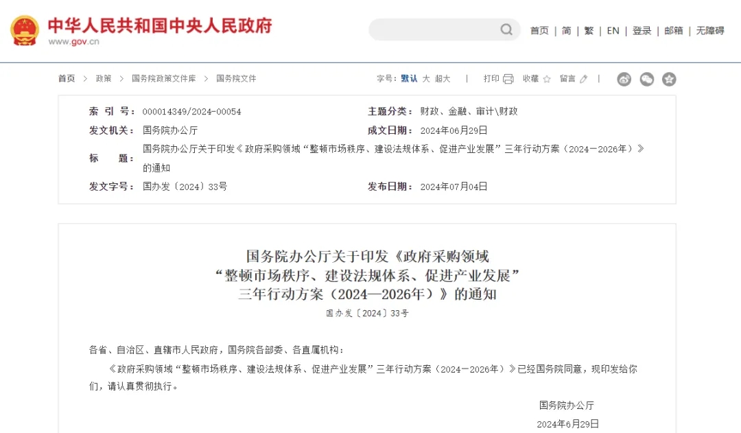 尽管问题重重,但招标投标的这种工程集采模式却不可一概而论地否定,只能加强监管并且逐个击破,保护这种采购方式,进行良性竞争。针对政府采购领域突出问题,今年7月,国务院办公厅印发《政府采购领域“整顿市场秩序、建设法规体系、促进产业发展”三年行动方案(2024—2026年)》,采取了针对性解决举措。针对当前政府采购领域反映突出的采购人设置差别歧视条款、采购代理机构乱收费、供应商提供虚假材料、供应商围标串标等四类违法违规行为,财政部将牵头组织开展专项整治。