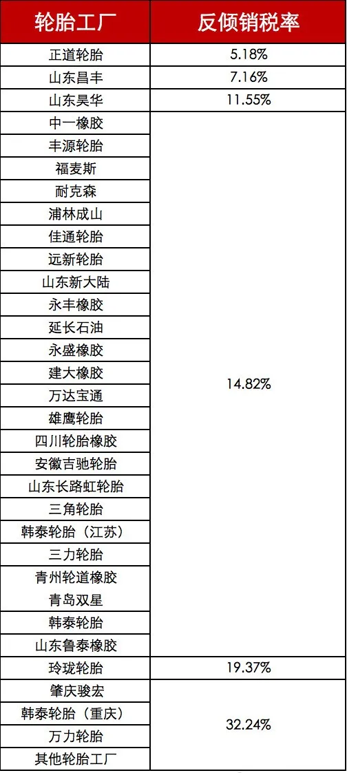墨西哥对来自中国的乘用车和轻型卡车轮胎征收反倾销税,税率最高达到32.24%。需要缴纳反倾销税的轮胎为用于轿车和轻型卡车的新型子午线充气轮胎,标称内径为13至22英寸。