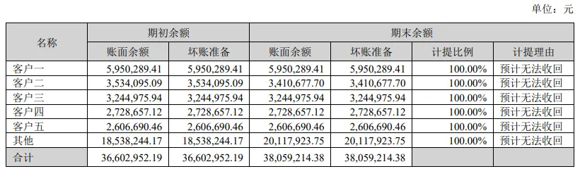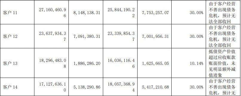 中报显示,前五大客户计提的3000多万坏账预计无法收回。