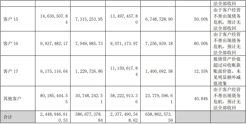 中报显示,坏账计提合计超过6亿,部分客户计提了高达45%的坏账,某些客户因经营不善出现债务危机,预计无法全部收回。