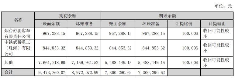 渝三峡中报显示,某客车和某重工企业计提的700多万坏账收回可能性小。