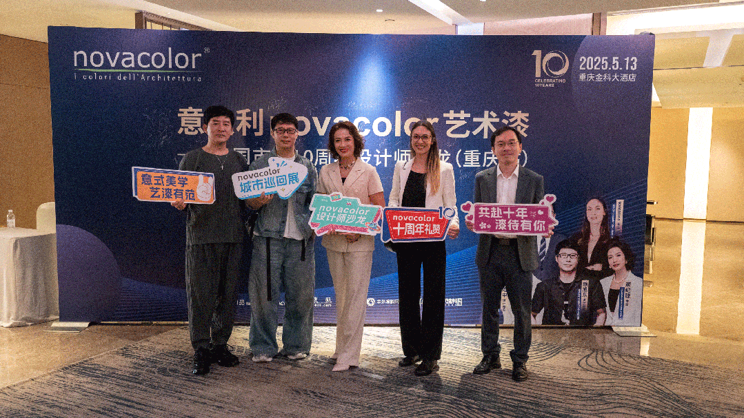 5月13日,"意大利Novacolor艺术漆——中国市场10周年设计师沙龙"在重庆隆重举行,Novacolor亚太区负责人Valentina、Novacolor中国运营中心CEO方立城、Novacolor重庆运营中心负责人颜纪琼、年代营创室内设计有限公司创始人赖旭东、香港宗灏装饰集团首席设计师刘增申、辣么设计创始人雅雅,以及重庆本土设计师精英齐聚一堂,共同开启了一场关于色彩、质感与空间美学的深度对话。