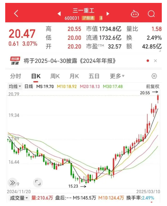 资本市场上,工程机械板块表现同样抢眼,股票今年以来平均上涨20.36%,行业龙头三一重工日线实现八连阳,收盘价创三年来新高。这意味着,工程机械行业得到了红利和机会。而众多工程机械龙头的火爆态势,实际上从去年就已经开启,配套关联企业的业绩增长更是佐证了这种亮点。