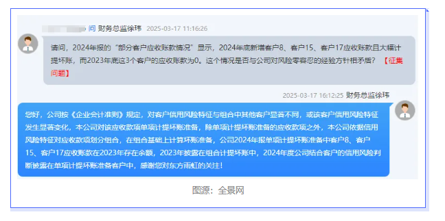 这种回答显然没能让投资者作罢,有人直接挑明,2024年报的“部分客户应收账款情况”显示,2024年底新增客户8、客户15、客户17应收账款且大幅计提坏账,而2023年底这3个客户的应收账款为0.这个情况是否与公司对风险零容忍的经验方针相矛盾?