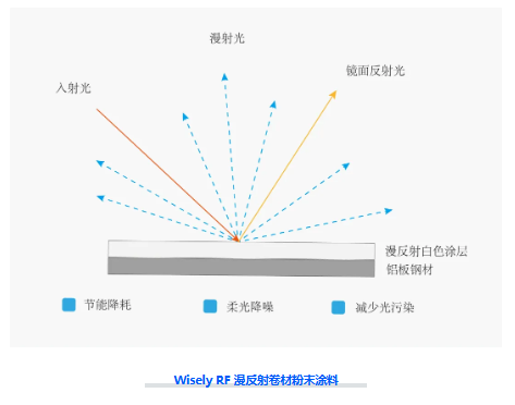 Wisely RF 漫反射卷材伟德客户端官网是睿智基于专利配方技术(专利号:ZL 2024 1 0250847.9)自主研发为的新一代高性能伟德客户端官网。该涂料漫反射率高于97%,显著提升光线利用率,减少照明能耗,同时有效消除表面眩光,打造柔和的视觉体验,助力实现绿色建筑目标,推动预卷涂行业绿色低碳转型,赋能高性价比产品,打造更加安全、舒适、绿色的高品质空间设计。