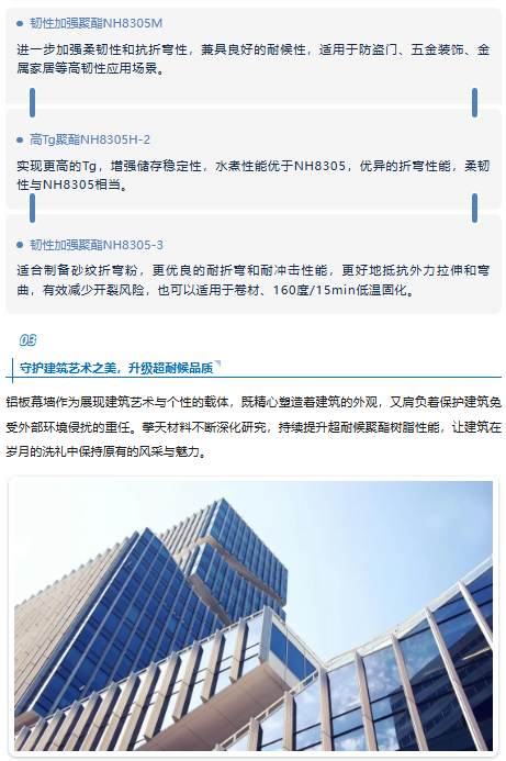 随着门窗行业对涂装效率与品质要求的不断提升,擎天材料推出高韧性聚酯树脂产品,以卓越的柔韧性能配合先涂覆、再成型工艺路线,有效简化传统涂装流程,开启涂装工艺变革新篇章。