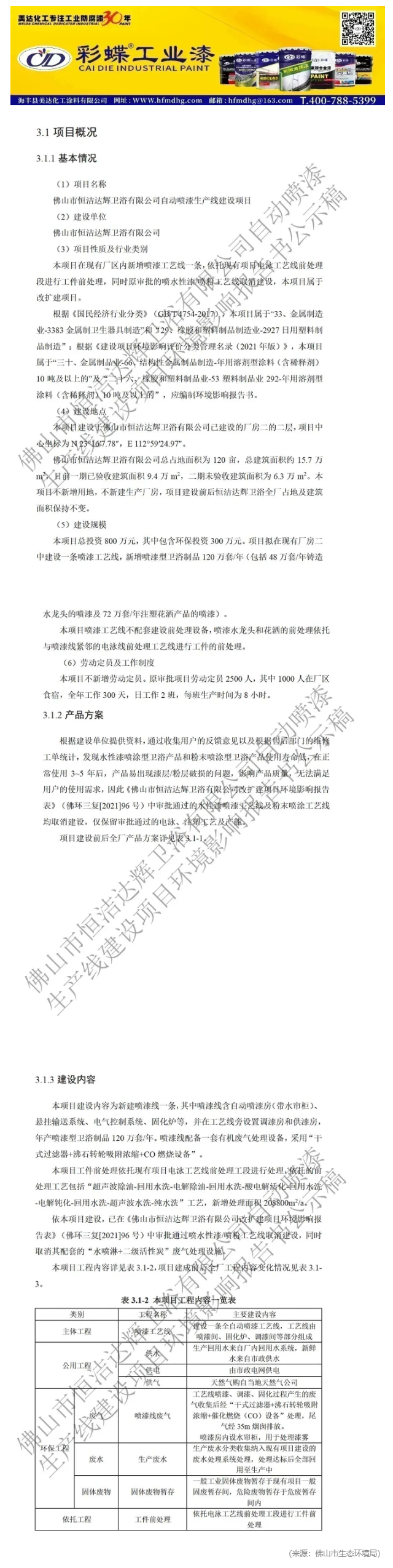 项目名称:佛山市恒洁达辉卫浴有限公司自动喷漆生产线建设项目