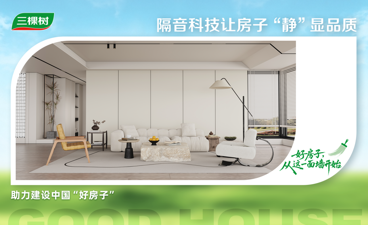 5月1日实施的新国标把楼板隔音标准提高到≤65分贝,三棵树以“降噪、环保、高效”为核心,直接甩出降噪三件套,为“好房子”降噪构筑系统性解决方案。