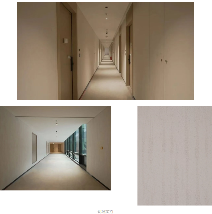 酒店走廊采用三棵树晶彩石艺术漆树纹,其效果栩栩如生,仿佛是大自然亲手勾勒出的画卷。墙面肌理自然流畅,宛如天成,整体无缝设计,彰显出极致工艺,同时延伸空间视觉感,告别压抑,让每一位宾客都能感受到独特的艺术氛围。