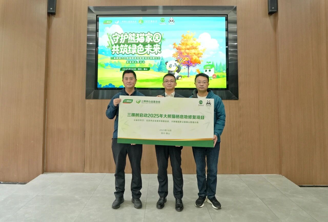 近日,以“守护熊猫家园,共筑绿色未来”为主题的三棵树助力大熊猫栖息地修复项目捐赠仪式在瓦屋山大熊猫国家公园博物馆内正式举行。三棵树公益基金会联合北京市企业家环保基金会(简称:SEE基金会)、大熊猫国家公园眉山管理分局,还有三棵树志愿者们共同参与了此次具有生态保护意义的行动。大熊猫国家公园眉山管理分局副局长李国华、三棵树四川工厂总经理王德兵、SEE基金会生态保护与自然教育项目总监蒋泽银等嘉宾出席。