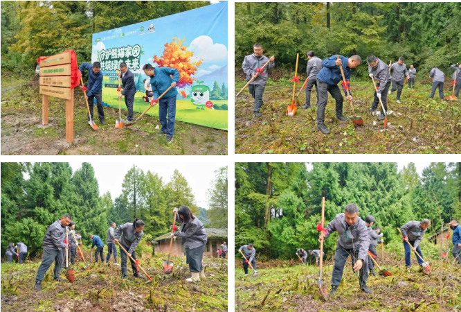 三棵树志愿者与SEE基金会、大熊猫国家公园眉山管理分局一行为“三棵树大熊猫栖息地修复试验区”立牌揭幕,标志着三棵树在2024年参与的蚂蚁森林开放计划、邀请平台用户通过收集绿色能量共同捐种下的41000棵槭树和桦木,在此刻正式落地生根,这是三棵树与SEE基金会、大熊猫国家公园以及广大爱心人士的绿色约定。