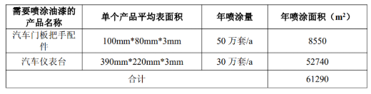 项目喷漆面积核算一览表