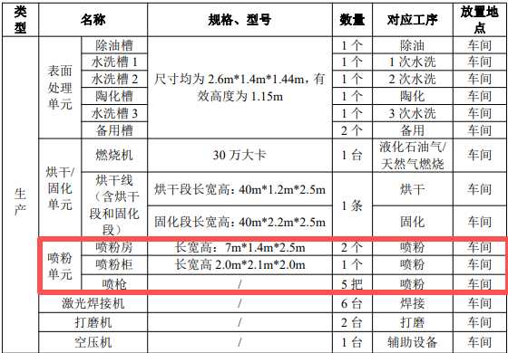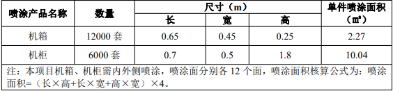 项目单套机箱喷粉面积约为2.27m2.单套机柜喷粉面积约为10.04m2.需要静电喷粉的机箱为12000套/年,机柜为6000套/年,根据《排放源统计调查产排污核算方法和系数手册》(公告2021年第24号)中“33-37.431-434”机械行业系数的14涂装-伟德客户端官网-喷塑的颗粒物系数300kg/t-原料,则环氧树脂粉附着率为70%,根据建设单位提供的MSDS文件及检测报告可知, 项目环氧树脂粉的密度为1.3g/cm³,环氧树脂粉VOCs含量为<5g/L,本项目取5g/L(根据密度折算VOCs含量约为0.38%),则环氧树脂粉的固含量约为1-0.38%=99.62%。则项目环氧树 脂粉的用量核算如下: