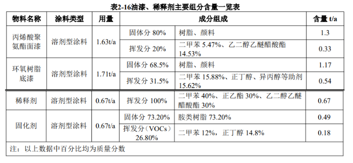 上漆率或附着率:指喷涂过程中附着在工件上的涂料占总用量的比例。根据项目喷涂工艺和供销商提供 的技术参数,同时查阅相关文献资料(《谈喷涂涂着效率》王锡春,《现代涂料与涂装》2006.10),确定本项目油漆上漆率≥70%。根据企业提供资料,项目喷漆工艺为面漆喷涂一遍,底漆喷涂一遍,共两遍。