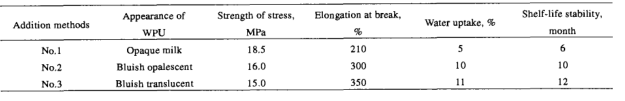 T ab le 3 T h e effect of th e ad dition m eth od of epo xy o n th e p ro perties o f W P U