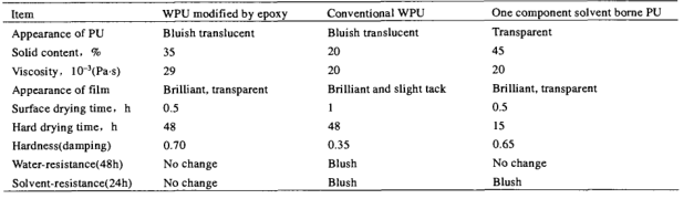 T ab le 4 T h e com p arison of aqu eou s p olyu retha n e a nd solven t b orne p olyu reth an e